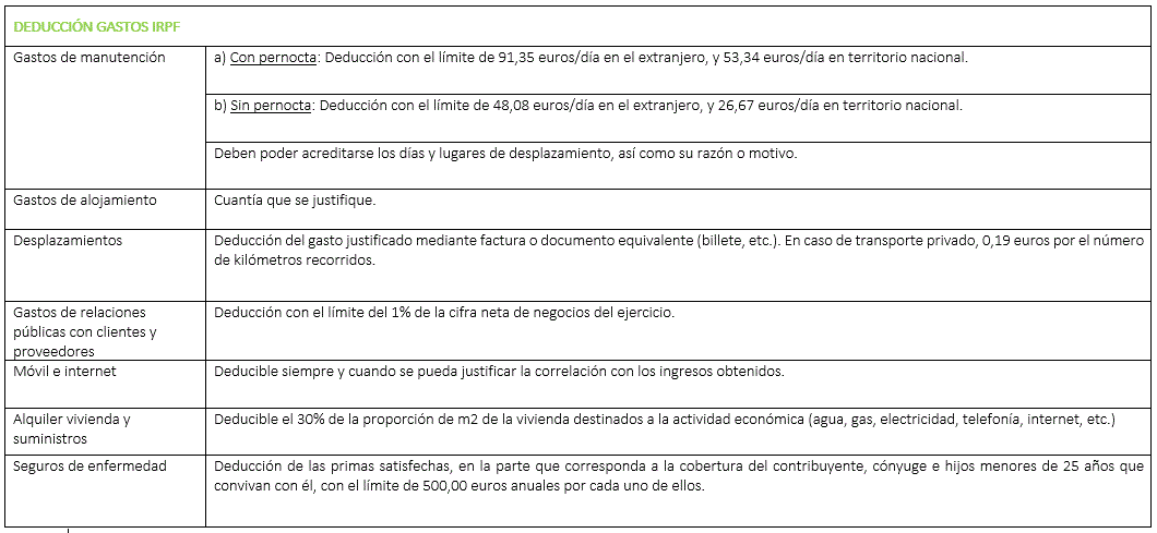 Gastos deducibles para los Profesionales Autónomos en el ejercicio de su actividad, de acuerdo con el IRPF